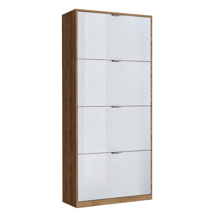 Шкаф за обувки Йоро 4 в декор дъб вотан и бял гланц, размери: 64/19/157 см
