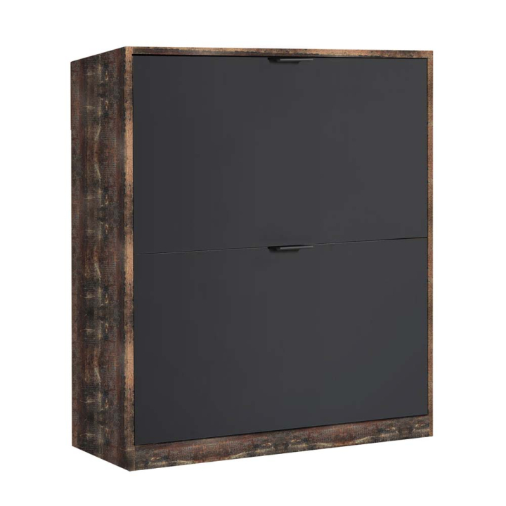 Внесете стил и ред във входното си пространство с минималистичен шкаф за обувки, който съчетава естетика и функционалност. Мебел с характер - в наситен антрацит и корпус от тъмен дървесен декор във винтидж стил – идеален за съвременни пространства с индустриална естетика.