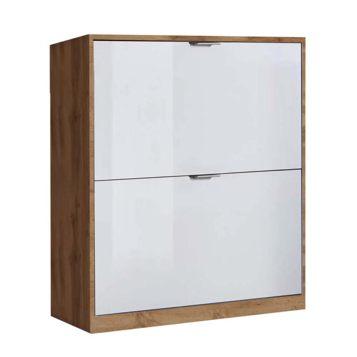 Шкаф за обувки Йоро 2 в декор дъб вотан и бял гланц, размери: 64/19/82,4 см