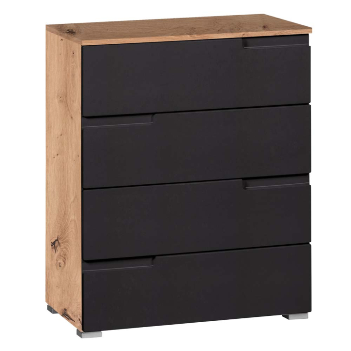 Комод Муун с 4 чекмеджета в декор дъб артисан и антрацит мат, размери: 65/40/80 см