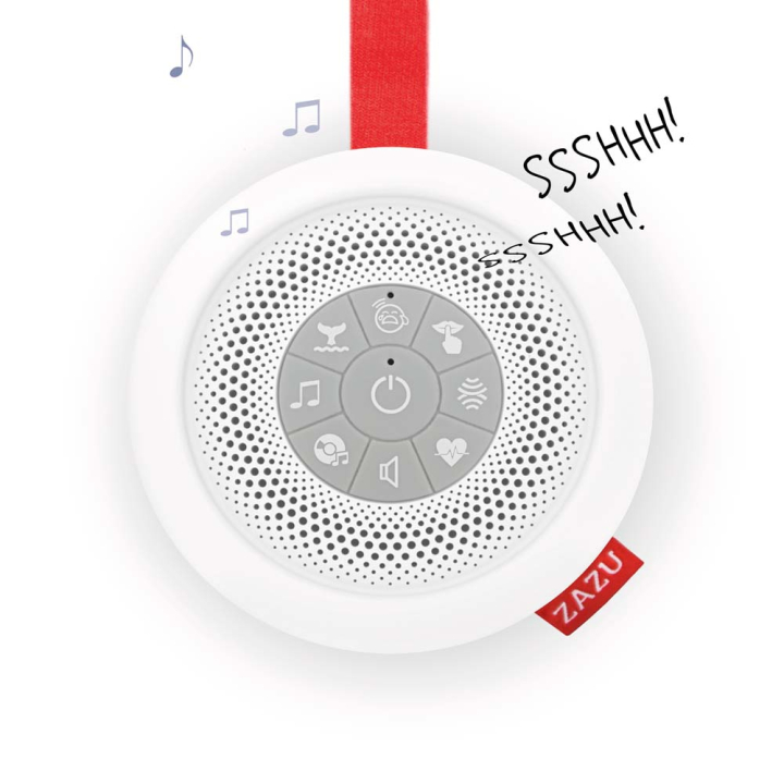 Перфектен преносим приятел, който ще успокоява бебето навсякъде, където отидете. Устройството е компактно и много удобно за закачане към креватчето или детската количка. Умната машинка възпроизвежда звуците от утробата на майката, също така предлага бял шум*, релакс мелодии и приспивни песни. Изключва автоматично след 20 минути. Сензорът за звук ще включи звука отново, когато бебето се разплаче.