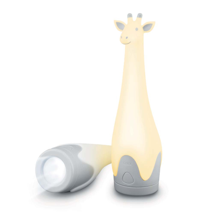 Жирафчето е нощна лампа и фенер в едно. Когато се използва като лампа, може да свети в различни цветове – бял, оранжев, червен, розов, син, тюркоаз и зелен. Фенерът се изключва сам след 10 минути, а лампата – след 30. Батерията Li-ion се зарежда.