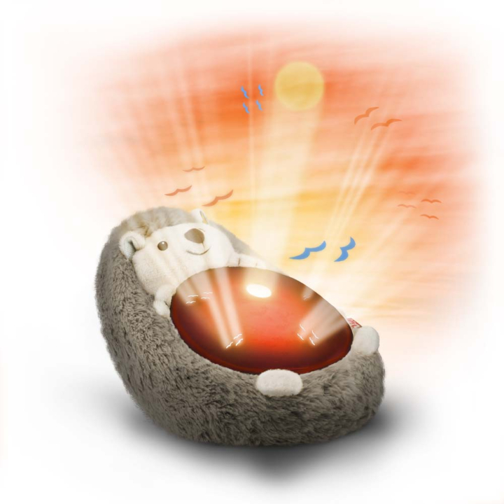 Превърнете детската стая в пейзаж с красив залез. Мекият и пухкав приятел на бебето по време на сън му помагат да заспи с помощта на звуци и цветове. В 2 стъпки анимацията става по-тиха и приятна за унасяне. Прожекторът се изключва сам след 30 минути.