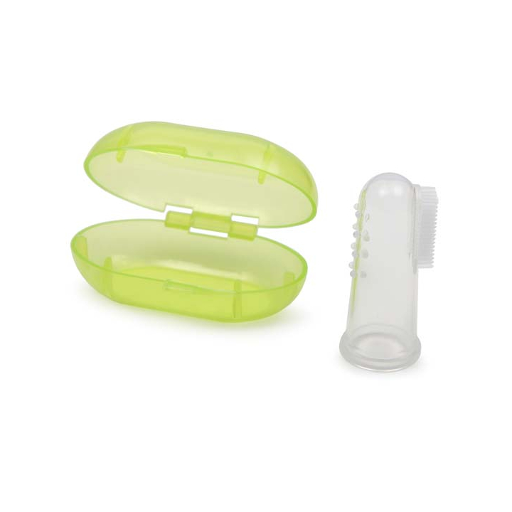 Този артикул е предназначен за нежно измиване на детските зъби и за нежно масажиране на венците и облекчаване на болката от пробиването на първите зъбчета. Комплектът включва и кутийка за съхранение на накрайника, предпазваща накрайника от прах и замърсявания. Без съдържание на BPA.