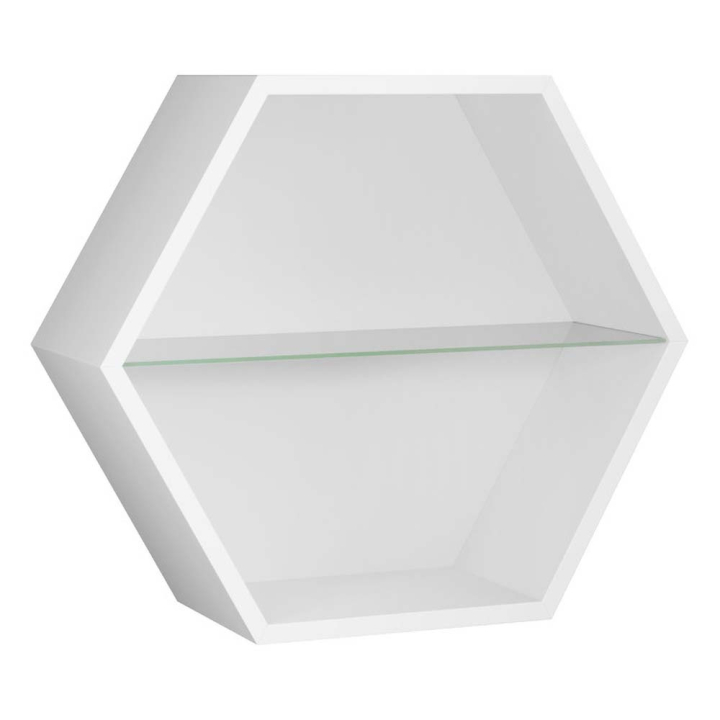 Със своята изчистена шестоъгълна форма, стенната етажерка Едж е едновременно функционална и декоративна. Нейната геометрична конструкция добавя динамика и характер в помещението, а практичният стъклен рафт придава лекота и позволява организиране на книги, аксесоари или декоративни предмети, като същевременно запазва модерната визия на модела.