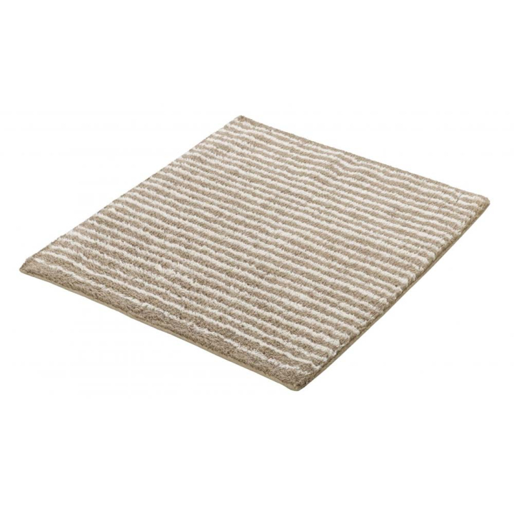 Изработена от 100% памук, постелката предлага особено приятно усещане, когато стъпвате върху нея. С деликатни райета и нежен цвят, тя създава топла и приветлива атмосфера в банята. Противоплъзгащата подложка осигурява допълнителна безопасност върху гладки повърхности. Подходяща е за помещения с подово отопление и е сертифицирана с Oeko-Tex Standard 100, което гарантира, че не съдържа вредни вещества.