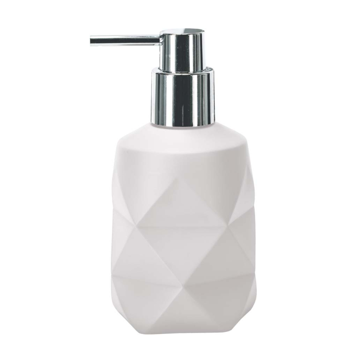 Дозатор за течен сапун от полиресин в бяло и сребристо, 8/8/17 см