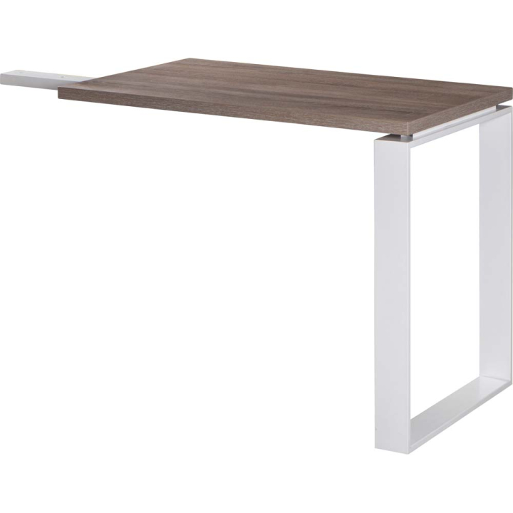 Допълнителен плот към офис бюро Дизеньо (35255020002) с размери Ш:90/Д:60/В:75 см. Моделът притежава специфичен дизайн, характерен за обзавеждане на офис помещения, с единна визия сливаща се с дизайна на бюрото. Плотът е произведен от ПДЧ с меламиново покритие с големина 90/60 см, поставен на един правоъгълен метален крак в бял цвят. Плотът на бюрото е декориран в тъмен дървесен декор (дъб трюфел) с красива дървесна репродукция без чворове.