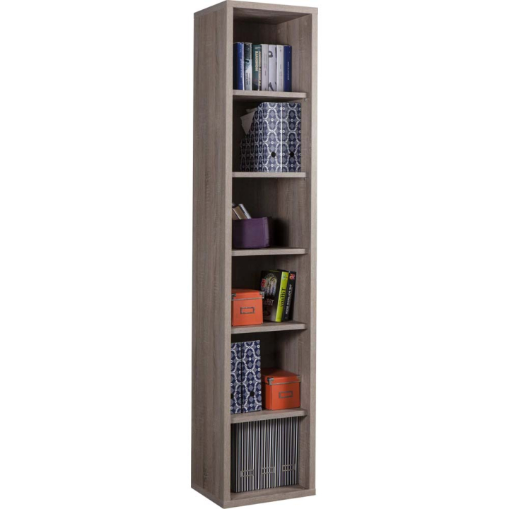 Етажерката е в тъмен дървесен декор (дъб трюфел) с красива дървесна репродукция без чворове. Моделът предоставя удобно място за съхранение на папки, класьори, офис материали и консумативи, перфектното обзавеждане за офиси и професионални студия.