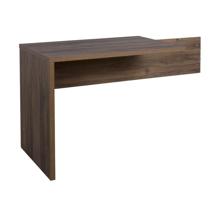 - Работен плот, изработен от 30 мм ПДЧ с меламиново покритие в декор орех, осигуряващ стабилност и дълготрайност.