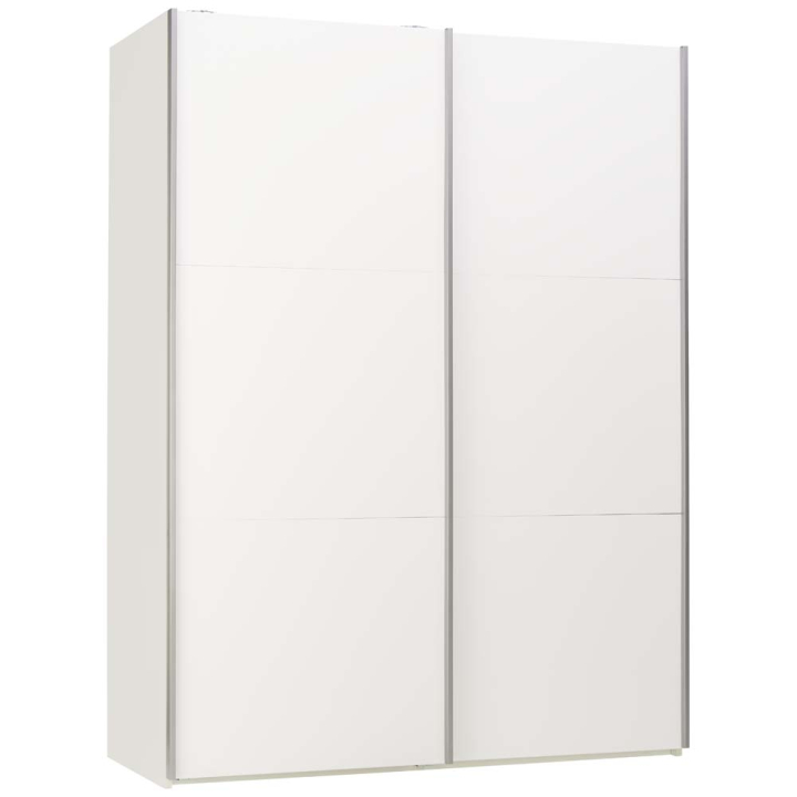 Двукрилен гардероб с плъзгащи врати с размери Ш:150.8/Д:63.3/В:220.3 см. Моделът разполага с класическо вътрешно разпределение с две отделения с монтирани във всяко по един лост за закачалки и един рафт. Плъзгащите врати са със сребристи кант дръжки, изключително удобни за отваряне и затваряне, но преди всичко моделиран по този начин гардеробът ще пести място в помещението. Допълнително към модела може да поръчате скрин за вграждане и допълнително рафтове. С модела бързо и лесно ще организирате личното пространство на вашето дете, като всяка дреха ще намери своето място на лоста за закачалки или прилежно поставена на рафта.