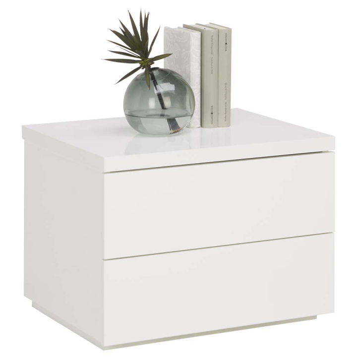 Нощно шкафче с размери Ш:55/Д:44/В:41 см. Моделът разполага с две практични чекмеджета за съхранението на дреболийки. Височината на продукта е съобразена с височината на повечето спални, така че поставено до леглото всички лични вещи, аксесоари и медикаменти ще са на една ръка разстояние. Притежава модерна визия и стил, напълно отговаряща на новите тенденции в мебелостроенето.