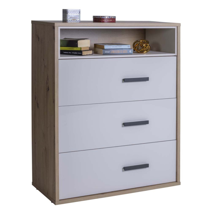 Комод Мипиаче с 3 чекмеджета в декори кашмир гланц и дъб артисан, размери: 89/40/111,7 см