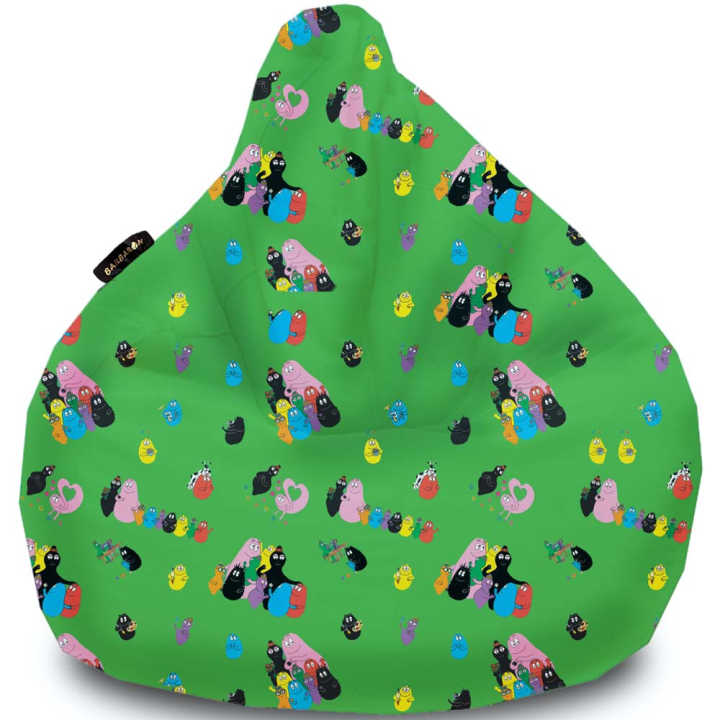 Детски барбарон с размери Ш:55/Д:55/В:55 см, с обем 120 л. Пуфът отлично се вписва в аранжирането а вътрешни и външни пространства, като дневна, хол, тераса, градина и др., но със своята дамаска на герои от „Татко Барба“ (Barbapapa) чудесно би стоял в детската стая. Притежава ергономичен дизайн без ръбове за постигането на максимален комфорт. При сядане или лягане заема формата на тялото, като по този начин предоставя оптимален релакс.