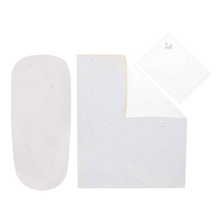 Мекият и нежен спален комплект за количка Kikkaboo осигурява спокоен сън на всяко дете, докато е навън. Изработен е от OEKO–TEX сертифициран 100% Ранфорс памук, а дизайнът е семпъл и приятен и носи комфорт и уют.