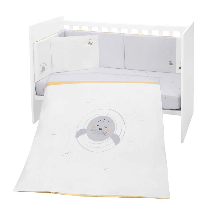 Бебешки спален комплект от 6 части 60/120 см, 100% памук ранфорс; закачлив дизайнерски десен в неутрални цветове