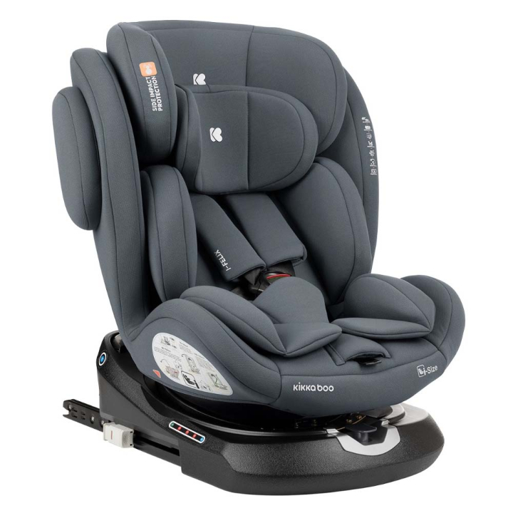 Столчето за кола i-FELIXна марка Kikkabooосигурява сигурност и уют при всяко пътуване. Седалката се върти на 360° и позволява лесния достъп до детето, както и смяната на посоката, в която то да стои. Столчето се адаптира спрямо растежа, като може да се монтира обратно на посоката на движение за деца с ръст от 40 до 105 см. и по посока на движение за деца с ръст от 76 до 150 см.