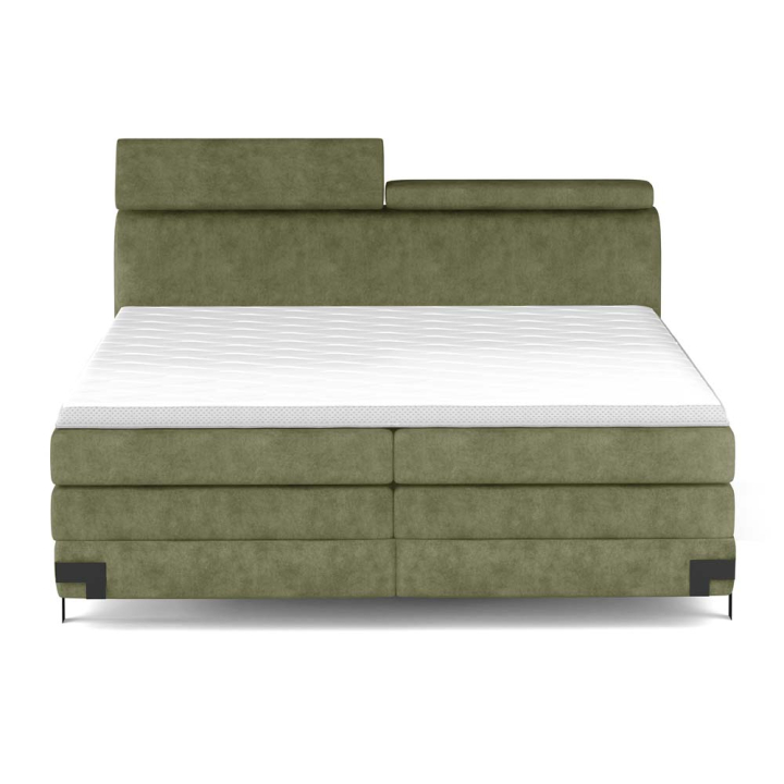 Зелено боксспринг легло Кано с подвижни подглавници и ракли с газов механизъм, площ за сън: 180/200 см, габаритни размери: 183/229/108-119 см