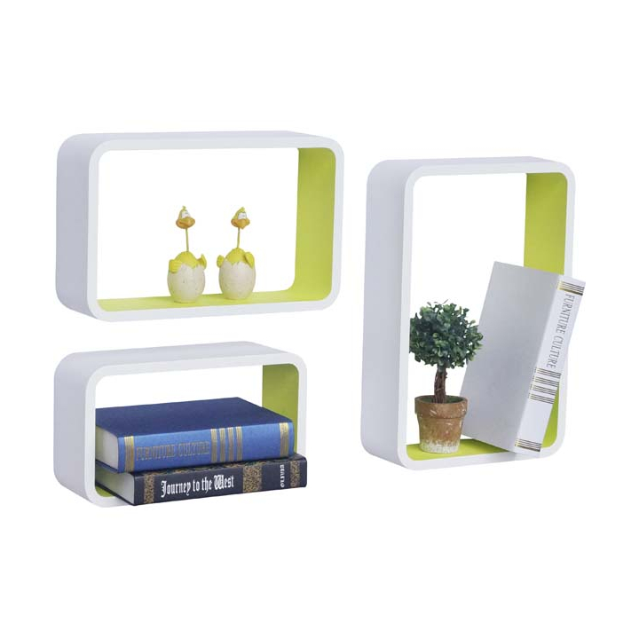 Практичен сет стенни етажерки в комбинация от бял и зелен гланц .