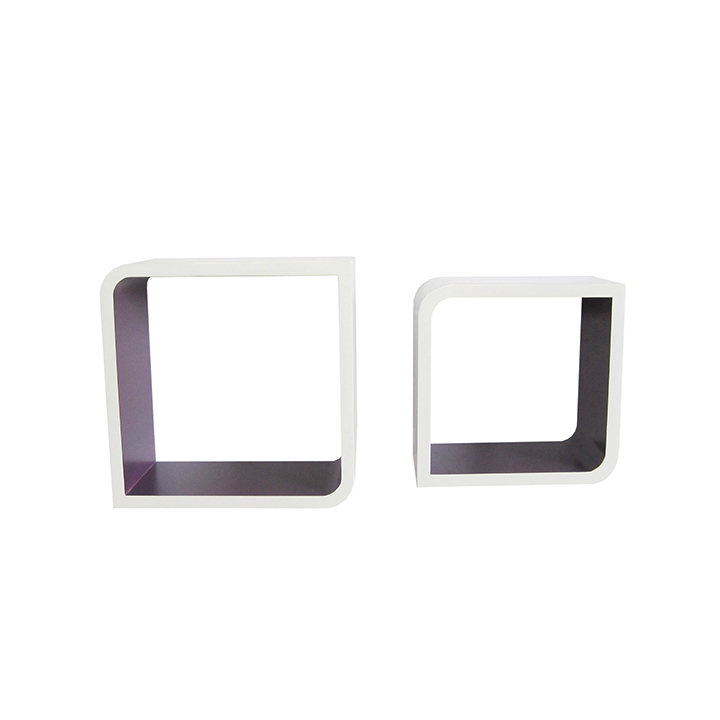 Функционален сет стенни етажерки в комбинация от бял и лилав гланц .