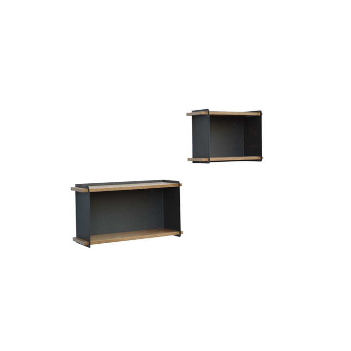 Стилен сет стенни етажерки в комбинация от МДФ с естествен дъбов фурнир и метал в цвят антрацит.