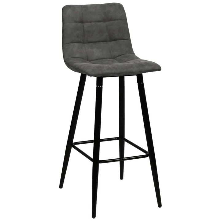Модерен бар стол с винтидж мотив с размери Ш:42/Д:51/В:104 см. Притежава удобна седалка и облегалка първокласно тапицирана с висококачествен текстил (микрофибър) в кафяво и черно (имитация на кожа), с пълнеж от пяна, поставена на четири черни крака. Прецизната изработка в съчетание с висококачествените материали гарантира дългогодишната употреба на продукта. Със своята форма и цвят, моделът напълно би се вписал към барове моделирани в дървесна текстура, като допълни приятната домашна атмосфера.