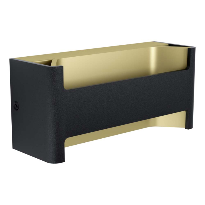 Апликът е с кубообразно тяло в черно със златисти акценти. С модерния си и минималистичен дизайн се превръща в основен акцент във всяко помещение у дома – спалня, всекидневна, коридор.
