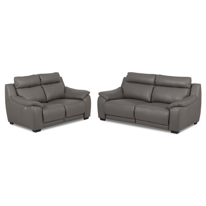 Сет дивани Кремона от сива естествена кожа - тройка-диван с релакс функция с размери: 213/97/97 см и двойка-диван с размери: 169/97/98 см