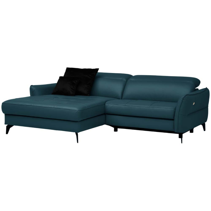 Ъгловата гарнитура Манта е създадена за динамичния дом, в който дизайна и удобството са в пълен баланс. Наситеният петролен цвят на естествената кожа внася изразителен акцент в интериора, докато елегантните черни крака подчертават модерния ѝ силует. Манта впечатлява и със своята функционалност – електрическа релакс функция, регулируемите подглавници и практичната ракла превръщат гарнитурата в персонално пространство за отдих, адаптирано към вашия ритъм и настроение.