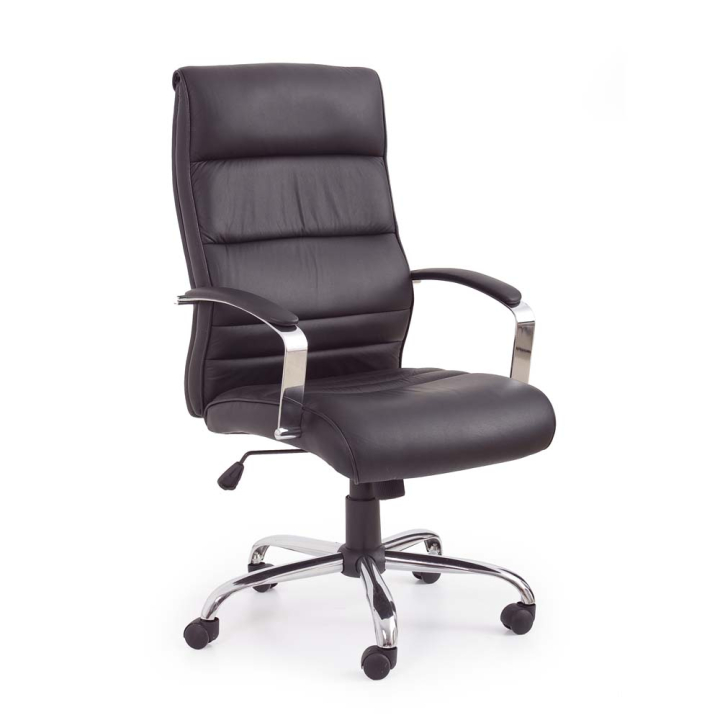 Черен офис стол Тексас от естествена кожа с регулируема облегалка и височина, размери: 63/75/112-122 см