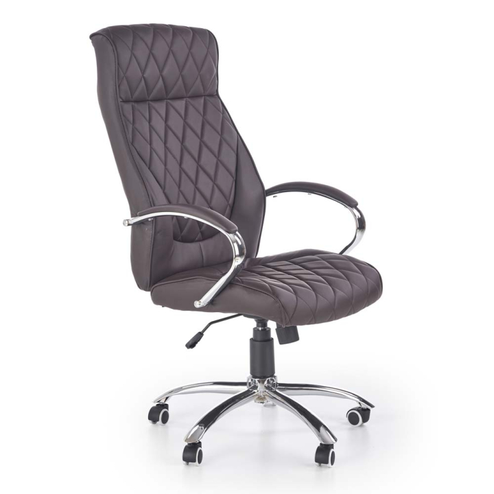 Офис стол Хилтън с подлакътниции и регулируема височина от тъмнокафява еко кожа, размери: 60/72/118-126 см