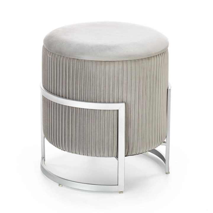 Внесете елегантен акцент и допълнително удобство в интериора с табуретка Крикет, съчетаваща стил, комфорт и практична функционалност. Меката тапицерия в мек сив нюанс е изработена от висококачествено кадифе, което придава усещане за уют на всяко пространство. Тази табуретка е не просто мебел, а изящен детайл с фина ретро естетика.