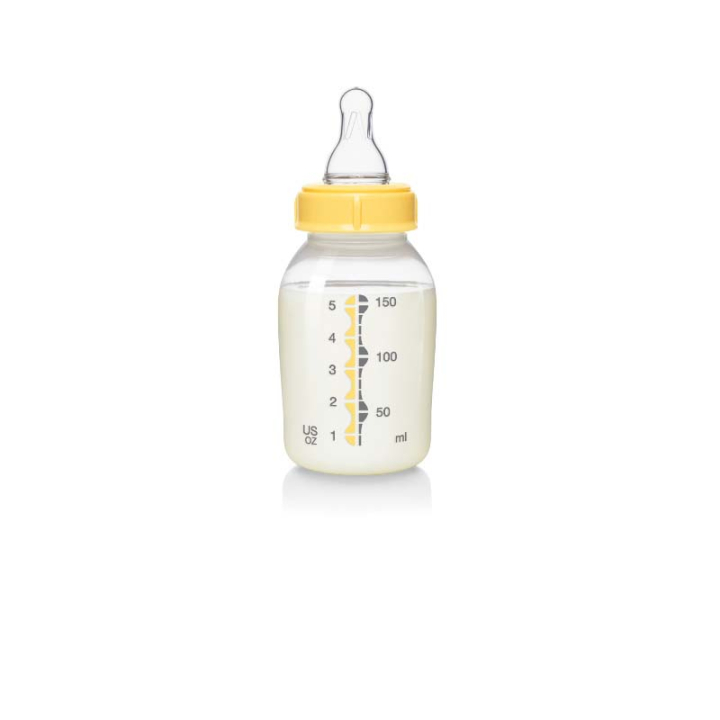 Шишето за хранене Medela включва всичко необходимо за събиране, съхранение и хранене с кърма. Съвместимо е с всички помпи за кърма Medela. Това лесно за употреба шише Medela Ви позволява прецизно измерване на кърмата с лесни за разчитане маркери в унции и милилитри. Може да се поставя в съдомиялна машина и микровълнова фурна – идеално за заети майки!