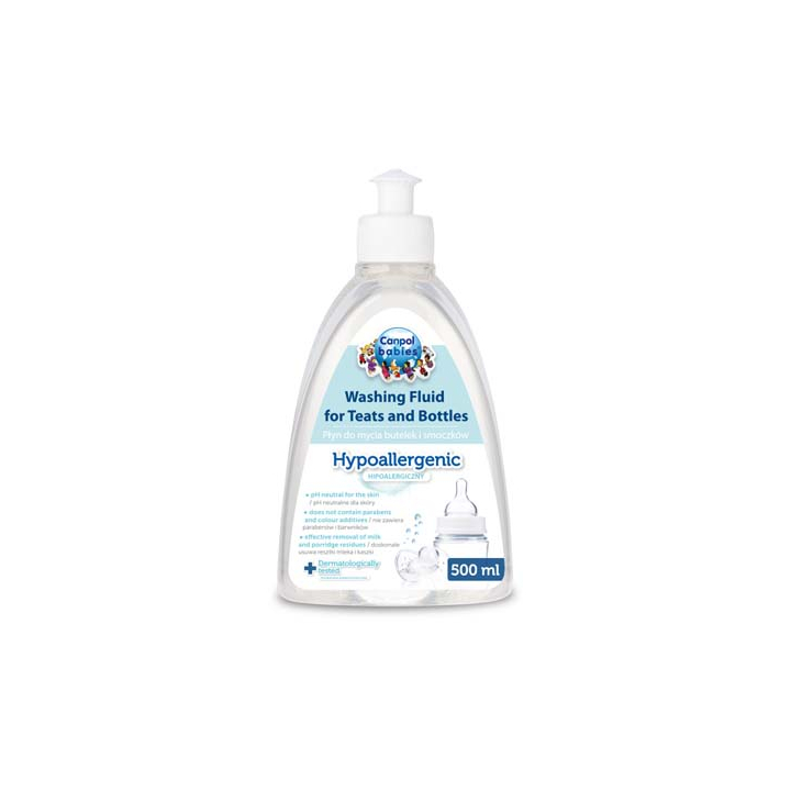 Препарат за почистване на шишета и биберони Canpol babies, 500 мл. Този препарат е създаден специално за деца - с грижа за тяхното здраве и безопасност.Достатъчно е малко количество за ефективно почистване на остатъци от храна по шишета, биберони и други аксесоари за хранене.Подходящ за измиване на играчки или аксесоари на помпа за кърма.Неутрално pH.НЕ съдържа парабени и оцветители.Дерматологично тестван.