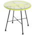 Градинска дизайнерска маса с метална конструкция, декорация от здрави светлозелени PVC въжета и стъклен плот