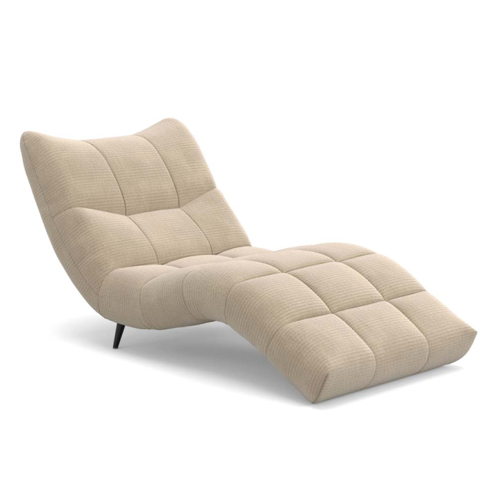 Комфорт, стил и модерна естетика в едно. Тази лежанка впечатлява с изчистена форма и уютна визия, която превръща всяко пространство в зона за релакс и отдих. Седалката и облегалката са оформени като голяма мека възглавница с декоративни шевове в правоъгълни форми - детайл, който придава съвременен характер и визуална мекота. Рипсеното кадифе допринася за усещането за мекота и уют, а металната основа осигурява стабилност и леко индустриално излъчване.