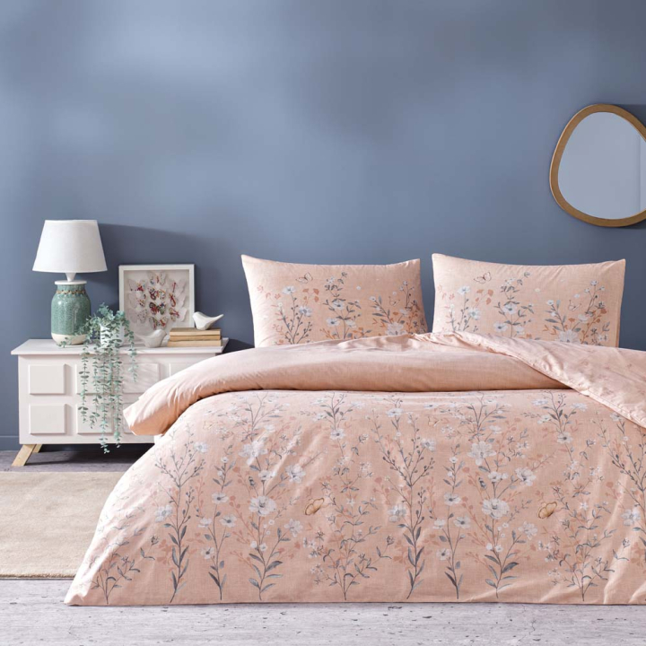 Спален комплект от 4 части с флорални мотиви в розово, 100% памук ранфорс