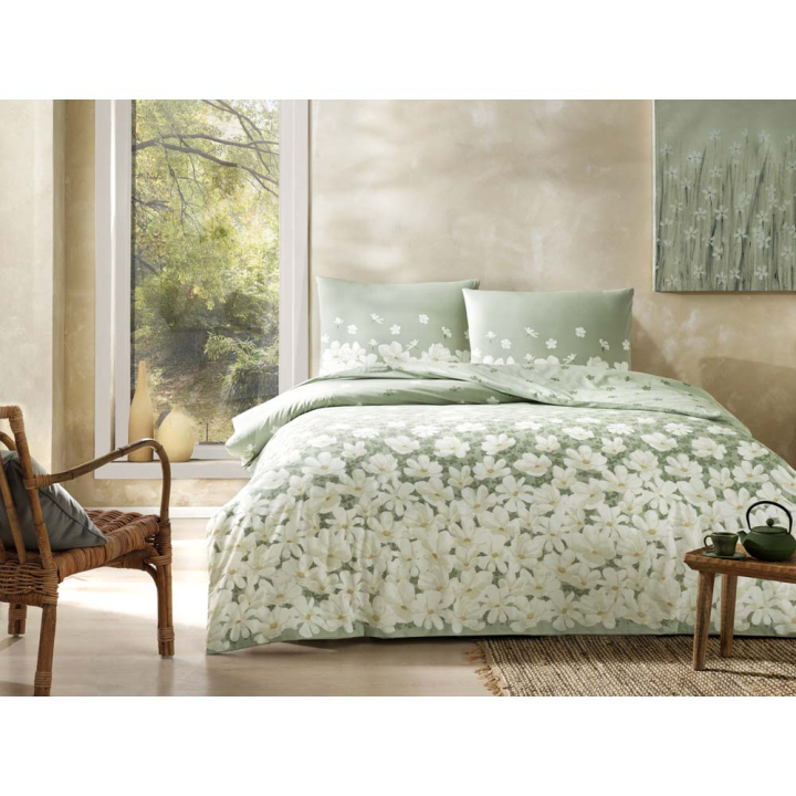 Романтичен комплект в зелен цвят, носещ съвременен почерк и усещане за ефирност в спалнята. При внимателно третиране и следване на инструкциите за поддръжка, текстилът ще съхрани дълготрайно високите качества, наситените цветове и плътността, с която се отличава.