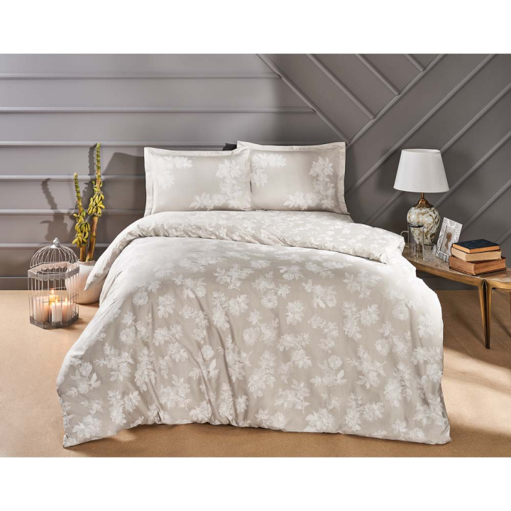Комплектът е в неутрални цветове и семпли флорални елементи, и внася уют и комфорт в спалнята. Материята е плътна и нежна, с висока способност да съхранява добре топлината на тялото и да я поддържа приятно, дори през най-студените зимни нощи. Със своите естествени нишки, памукът притежава щадящи кожата качества, без да предизвиква изпотяване, оставяйки я да диша свободно. Той балансира телесната температура, като предотвратява зачервявания и алергични реакции.