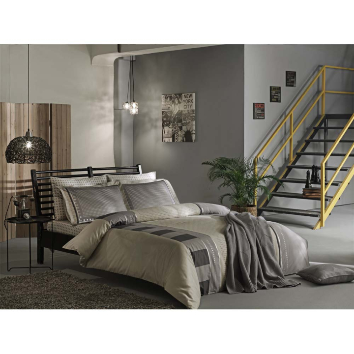 Комплектът е изключително стилен и внася комфорт и уют в спалнята. С неутрални цветове и семпъл дизайн, който се вписва във всеки интериор. Материята е плътна и нежна, с висока способност да съхранява добре топлината на тялото и да я поддържа приятно, дори през най-студените зимни нощи. Със своите естествени нишки, памукът притежава щадящи кожата качества, без да предизвиква изпотяване, оставяйки я да диша свободно. Той балансира телесната температура, като предотвратява зачервявания и алергични реакции.
