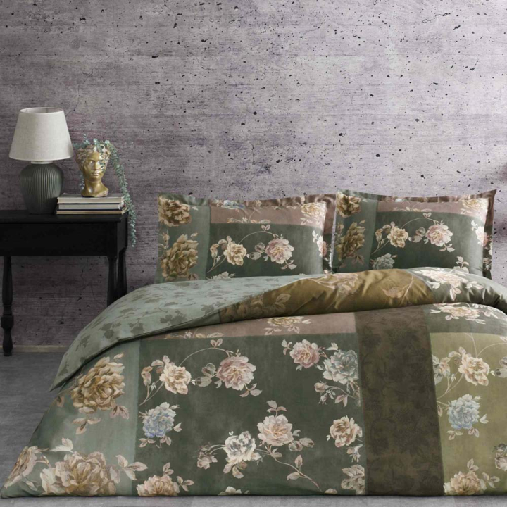 Романтичен спален комплект с флорални мотиви, 100% сатениран памук