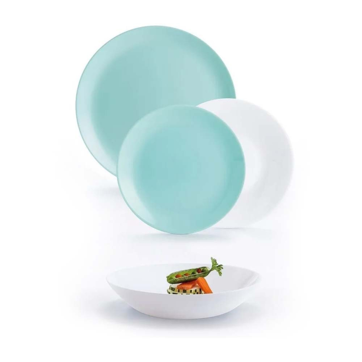 TURQ&WHITE сервиз за хранене от 18 части, изработен от aркопал в бяло и тюркоаз