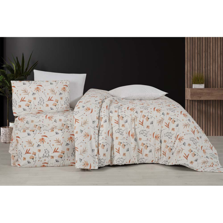 Спален комплект от 4 части с флорални мотиви, памук и полиестер