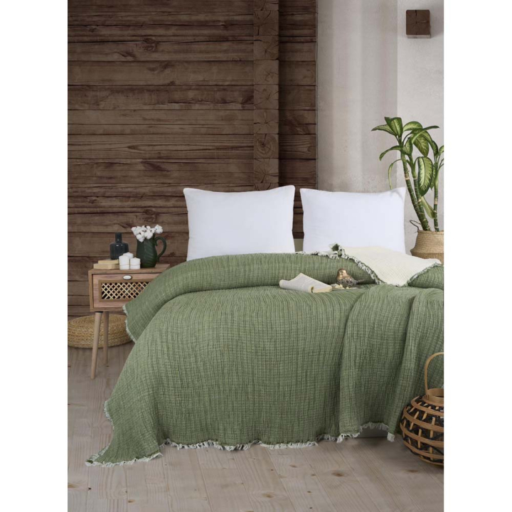 Шалтето е изработено от 8 слоя органичен памук муселин – дишаща, лека и устойчива материя. Регулира температурата, като поддържа топло през зимата и хладно през лятото. Подходящо е дори за чувствителна кожа.
