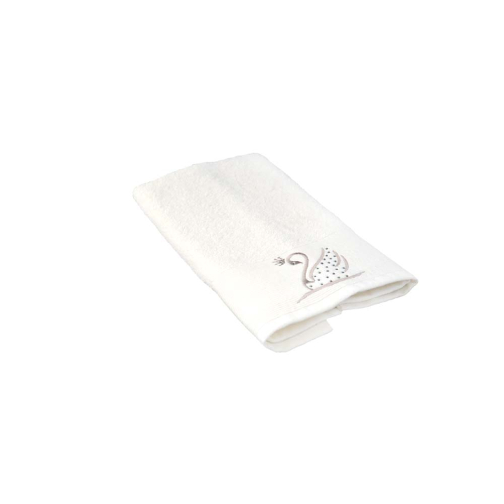 Памучна хавлиена кърпа в бежов цвят (екрю) с елегантен бордюр и интересен акцент, 30/50 см.