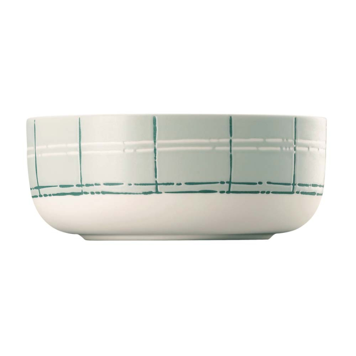 Геометричният дизайн на порцелановите съдове от серия Thomas Karo грабва вниманието със свежо намигване. Отличава се с нетипично нанесени прави и прекъснати линии, които оформят естетическата визия в съчетание на тъмнозелено, светлозелено и бяло. Цялостната концепция на това карирано очарование насочва към чистотата на природата и преобразява всяка маса с приятелско, живо присъствие.