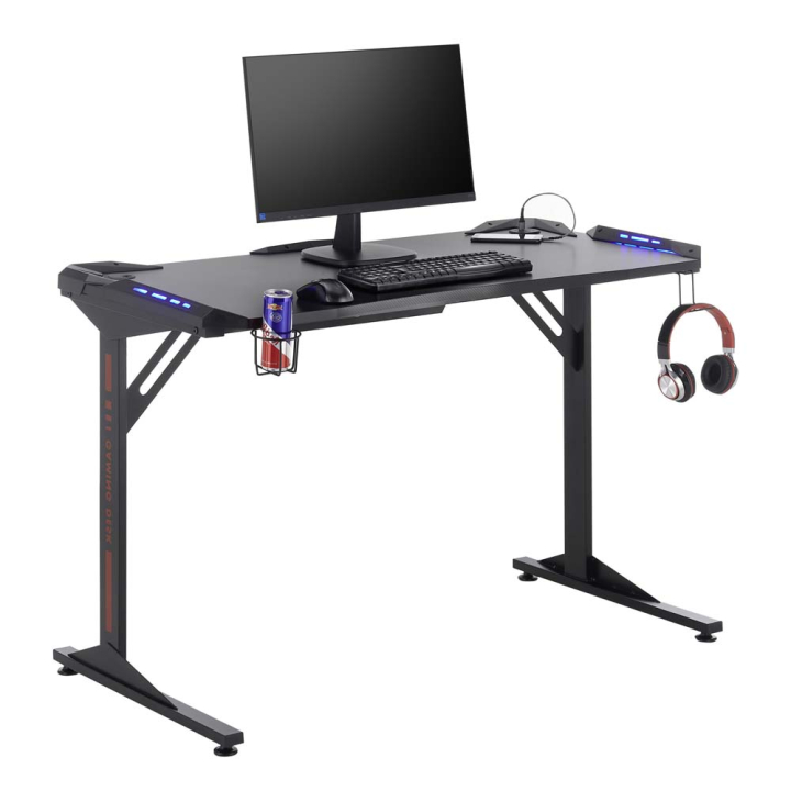 Геймърско бюро с размери Ш:119/Д:60/В:78 см. Дизайнът на модела предразполага за приятно изкарване на времето пред монитора, увлечени в поредната надпревара. Притежава достатъчно голям плот за поставянето на монитор, клавиатура и мишка. Плотът на бюрото е с карбонова текстура с отвор за кабели, LED осветление и 3 USB порта, поставени на два метални крака, боядисани в черен мат. Бюрото разполага с две поставки, едната от които за слушалки, а другата за напитки, които никога няма да разлеете, увлечени в играта.
