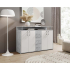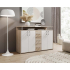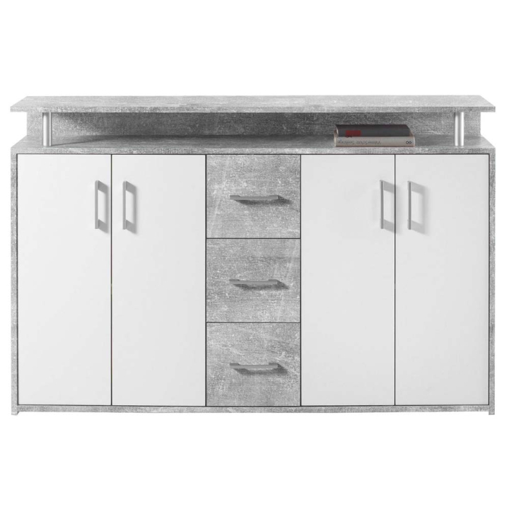 Комод с горен допълнителен плот и чекмеджета с размери Ш:139/Д:34/В:90 см. Моделът разполага с различни по вид и предназначение отделения за съхранение на лични вещи, аксесоари и предмети. Освен в дневната, практично място може да намери в офиса. Разполага с две отделения с четири врати на панти, три практични чекмеджета монтирани едно под друго, отворена ниша, както и достатъчно голям плот за поставянето на вещи, които искаме да са на видно място. В зависимост от вашите предпочитания и обзавеждането в помещението може да изберете комода да бъде с различен декор: бяло-сив или бяло и светъл дървесен. С този комод бързо и лесно ще организирате личното си пространство, като всичко ще лесно достъпно и надеждно съхранено.