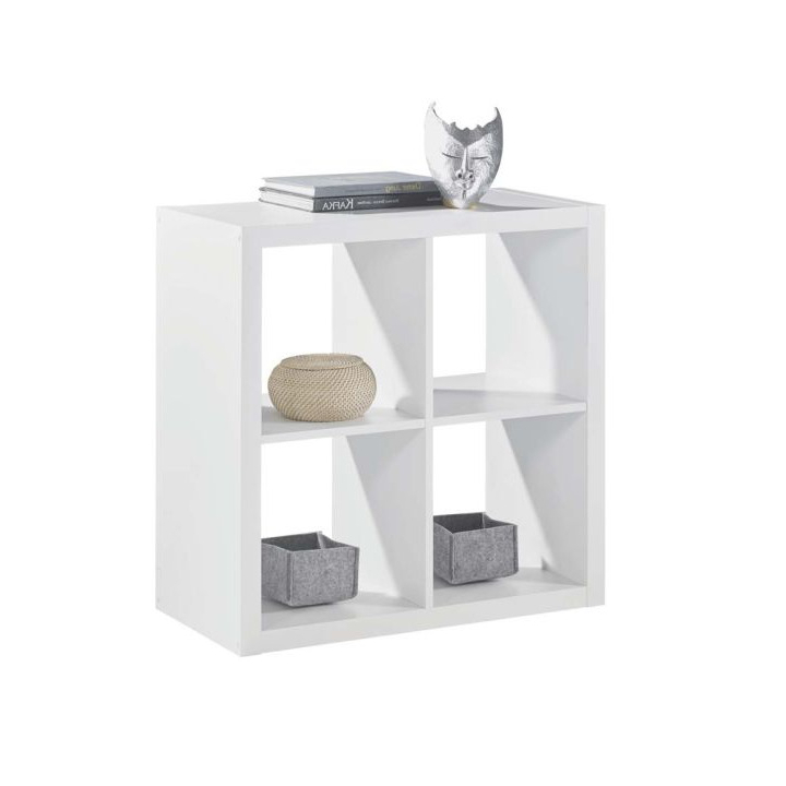 Етажерка с размери Ш:77/Д:38/В:77 см. Моделът е изключително популярен и търсен за обзавеждането на помещения с различно предназначение и стил. Със своите четири ниши и стабилна конструкция етажерката предоставя практично място за съхранение на малки предмети, артефакти и лични вещи. Семплият дизайн на модела, стилно декориран в бял цвят ще добави уют към помещението, като сполучливо може да се комбинира с мебели в други цветове и декори. Етажерката е произведена от ПДЧ. В правоъгълните ниши може да поставите кутии или кошници за съхранение на предмети и да направите етажерката още по-практична и атрактивна. Продуктът е подходящ за функционалното обособяване на декоративни кътове, удачно обзавеждане за дома или офиса. Артикулът може да бъде в светъл дървесен декор или бял цвят.
