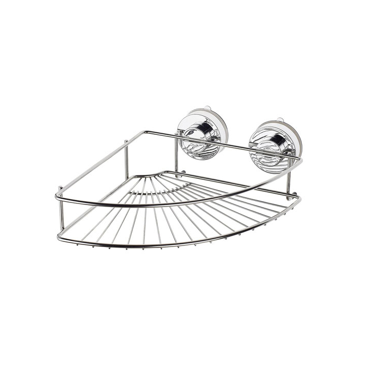 Висококачествена ъглова етажерка за баня, пригодена за стенен монтаж без необходимост от пробиване.